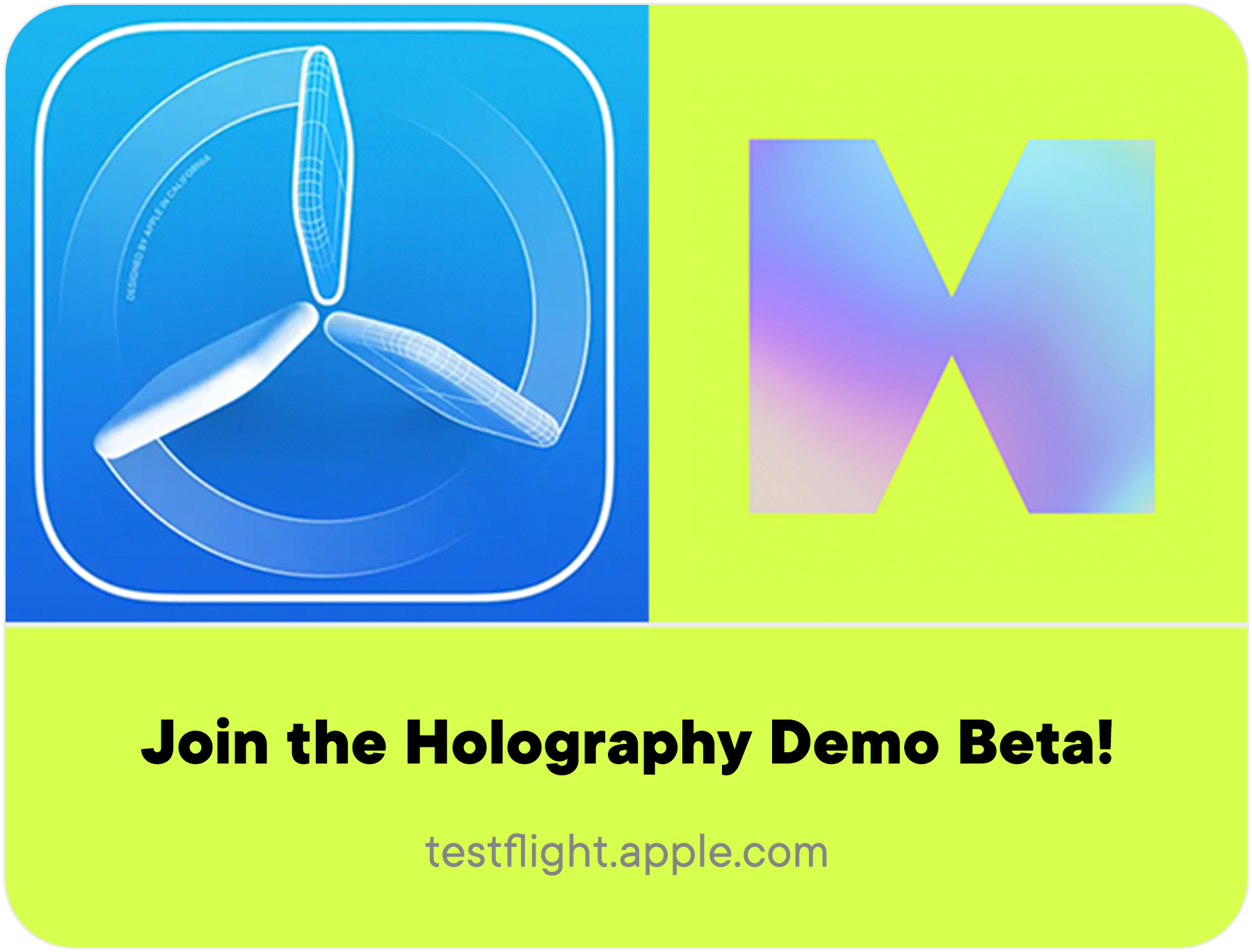 *If you haven’t previously installed Apple’s Test Flight app, this link will first have you install Test Flight , and then will allow you to install the Holography Demo app. NOTE: If Test Flight asks you to provide an activation code, simply click on the above button again once Test Flight is installed and it will then load the Holography Demo App installation page, no activation code required!